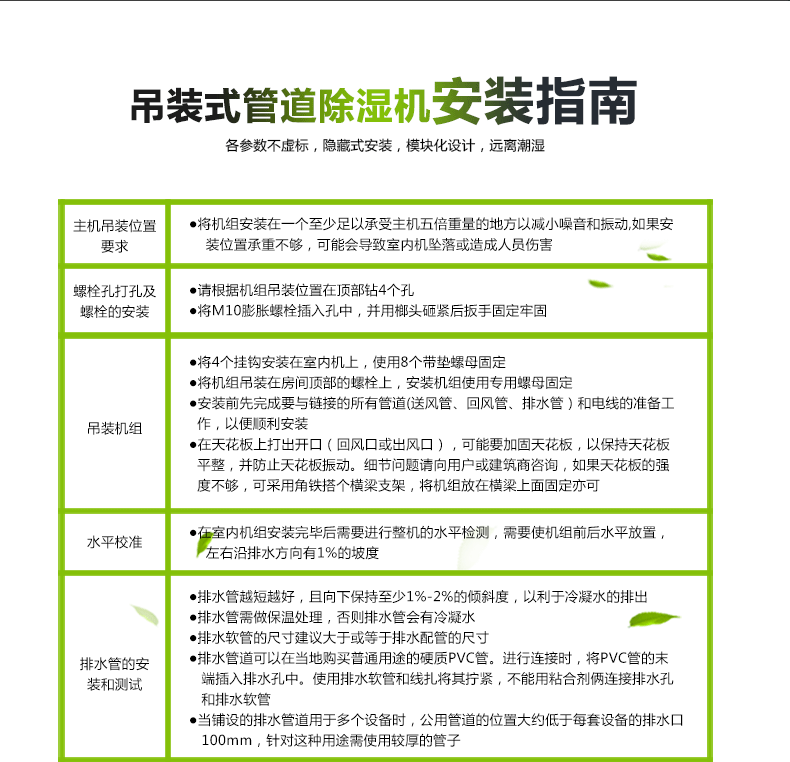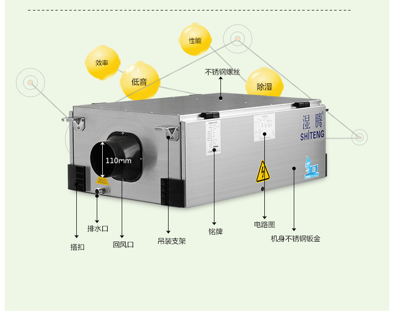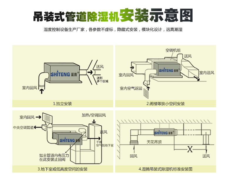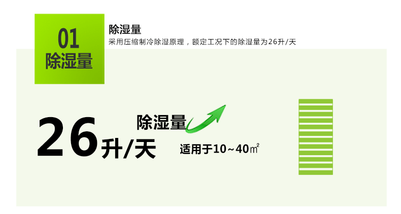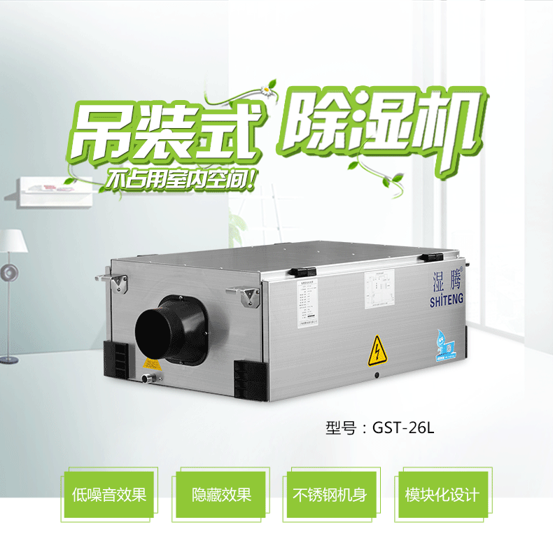 除湿机的作用:除湿机能够确保您家中的空气湿度保持在适当的水平1、可吊装也可暗装节省地面空间2、3%湿度精确控制,任意设定3、国际知名品牌旋转式压缩机4、压缩机三分钟自动延时保护5、静音、省时、省心、省电