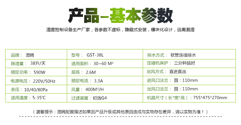 吊装式中央管道除湿机 GST-38L